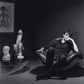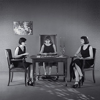 Embodied in a series of staged photographs, this series places photographic and cinematographic clichés and conventions in a different order to create new images. The studio becomes, by artifice, fake rooms (bedrooms, living rooms, waiting rooms,…) in which one or more models act out a role. Eye contact between the model and the spectator is denied, occasioning a dislocation of rapport. This in turn engenders an intangibility that needs to be imagined by the spectator. Song text engraved in glass, however, can limit the choices available to the observer. Once again, personal interpretation of the text is perhaps the route to appreciation.